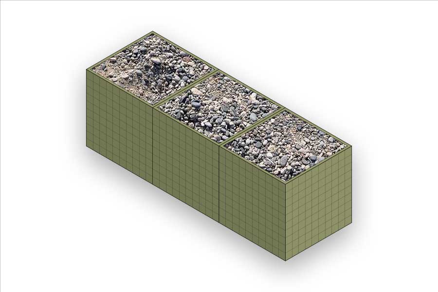 Используется для возведения защитных барьеров, подпорных и ограждающих конструкций, а также для усиления уязвимых участков инфраструктуры. Геотекстильная оболочка предотвращает потерю заполнителя и сохраняет эксплуатационные свойства габиона в течение всего срока службы.