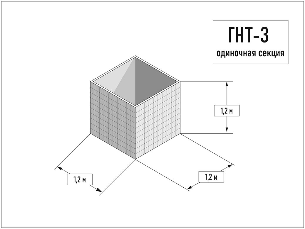Секция ГНТ-3 применяется для формирования усиленных точечных заграждений и опорных элементов. Конструкция рассчитана на механизированное заполнение и эксплуатацию в составе сложных инженерных систем.